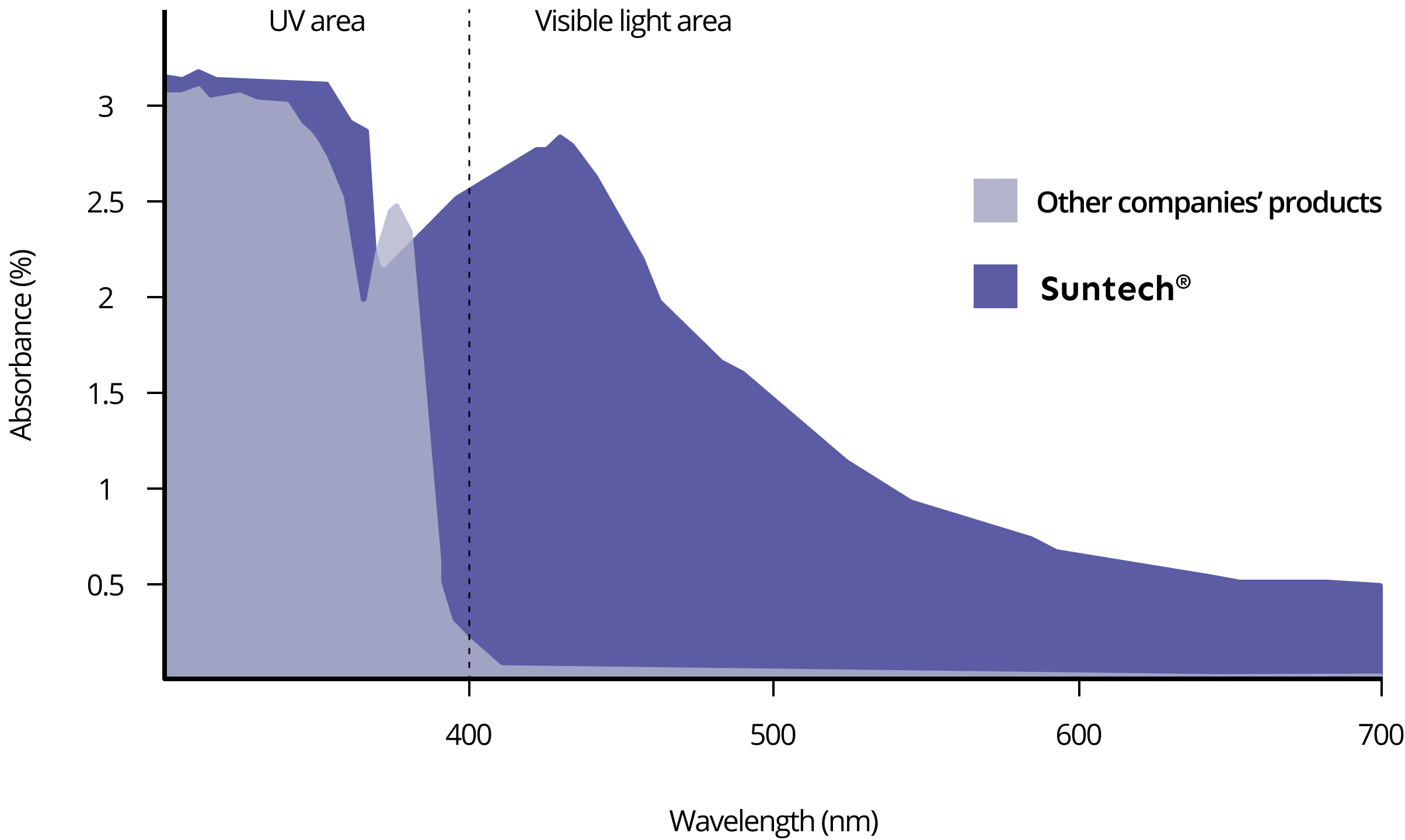 As a result of comparing Suntech® with other companies' products as shown in the figure above, when applied to plants that mainly use visible light, the effects on other companies' products are very limited because the wavelength distribution of other companies' products occurs only at wavelengths below 400nm, which is UV light.